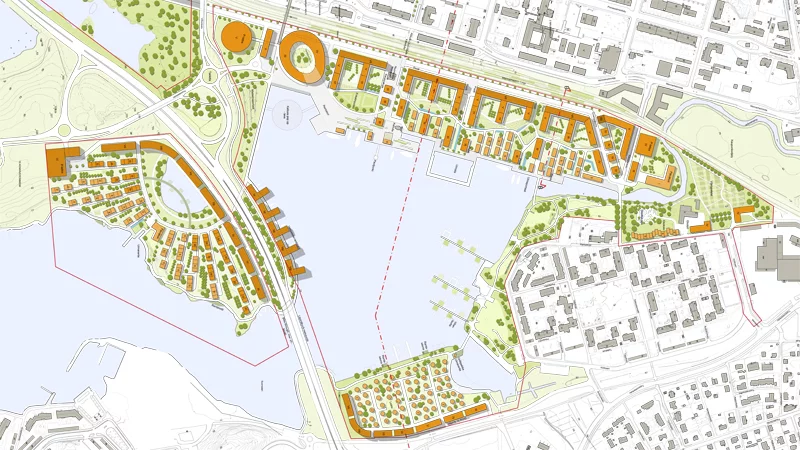 Ideas Competition for the Varikonniemi Area in Hämeenlinna. The competition program requested for lakeside housing, a new town hall, cultural centre, archeological museum, a line of offices and park-and-ride facilities next to the main railway station.