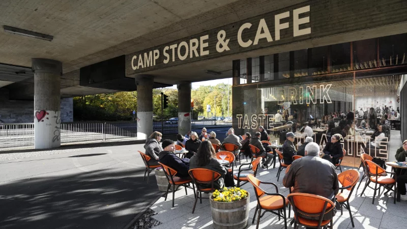 This overlooked space invites a new vision: a CAMP Store with a Cafè could serve the public, locals, and passers-by. The bridge's central span would house essential infrastructure - kitchens, toilets, and utilities - supporting pop-up food scene and tiny houses offering around 100 homes for homeless people and students.
